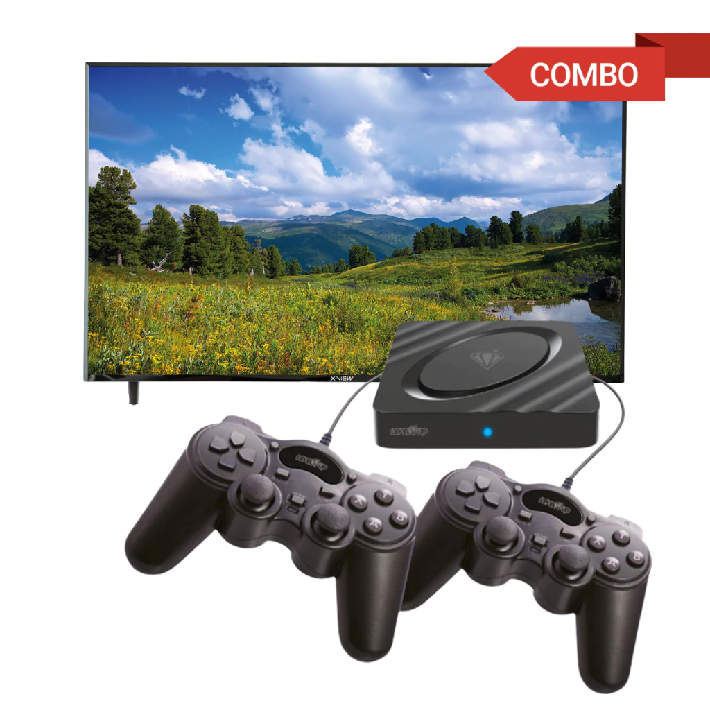 Disfrutá de la mejor calidad de imagen y una amplia variedad de juegos clásicos con este combo pensado para toda la familia. El Smart TV X-View TVS50 de 50 pulgadas con resolución 4K UHD te permite acceder a tus plataformas favoritas gracias a Android TV integrado, mientras que la consola RetroPlay LT trae más de 2300 juegos retro para revivir la nostalgia y divertirte con amigos.